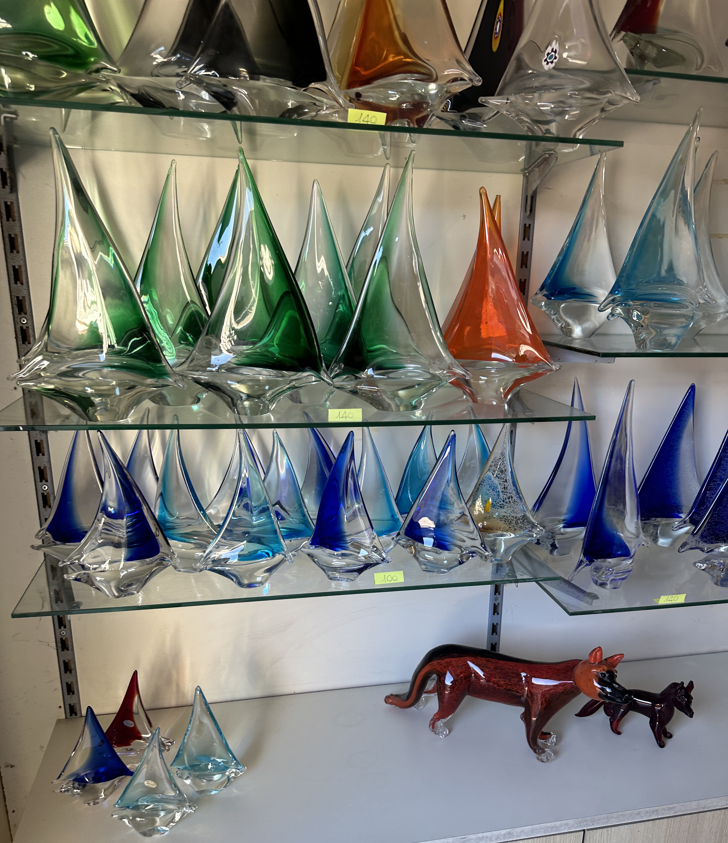 Giorgio is not a glass artist in the traditional sense, though he possesses the ability to make ordinary vases, animals and figurines you find all over Murano. Giorgio’s talent lies in making the extraordinary. In his vision, Cinderella doesn’t have only glass shoes, but Cinderella has a Glass Castle and he boasts an entirely glass Greek Temple. He works both traditionally (with the blow pipe) for his animals, dragons and chandeliers.